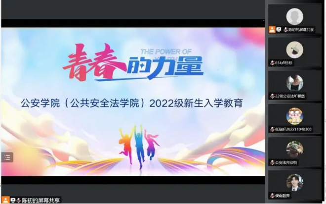 9月7日下午,明升M88 通过腾讯会议开展2022级新生纪律、安全及适应教育。本次新生入学教育以“适应大学 成人成才”为主题,辅导员方宁,崔逸霏,李沛君老师主讲,2022级全体新生参加。本次活动由方宁主持。