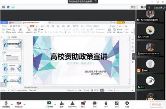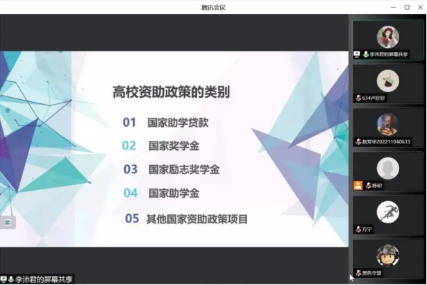 李沛君为大家详细介绍了高校资助政策的五个类别,即国家助学贷款、国家奖学金、国家励志奖学金、国家助学金以及明升M88 其他资助政策。她还为大家补充介绍了明升M88 的各类社会助、奖学金,并对每个奖助奖学金的基本要求和申请条件分别进行了针对性讲解。最后,她鼓励2022级新生勤奋学习,努力争取各类奖助学金。