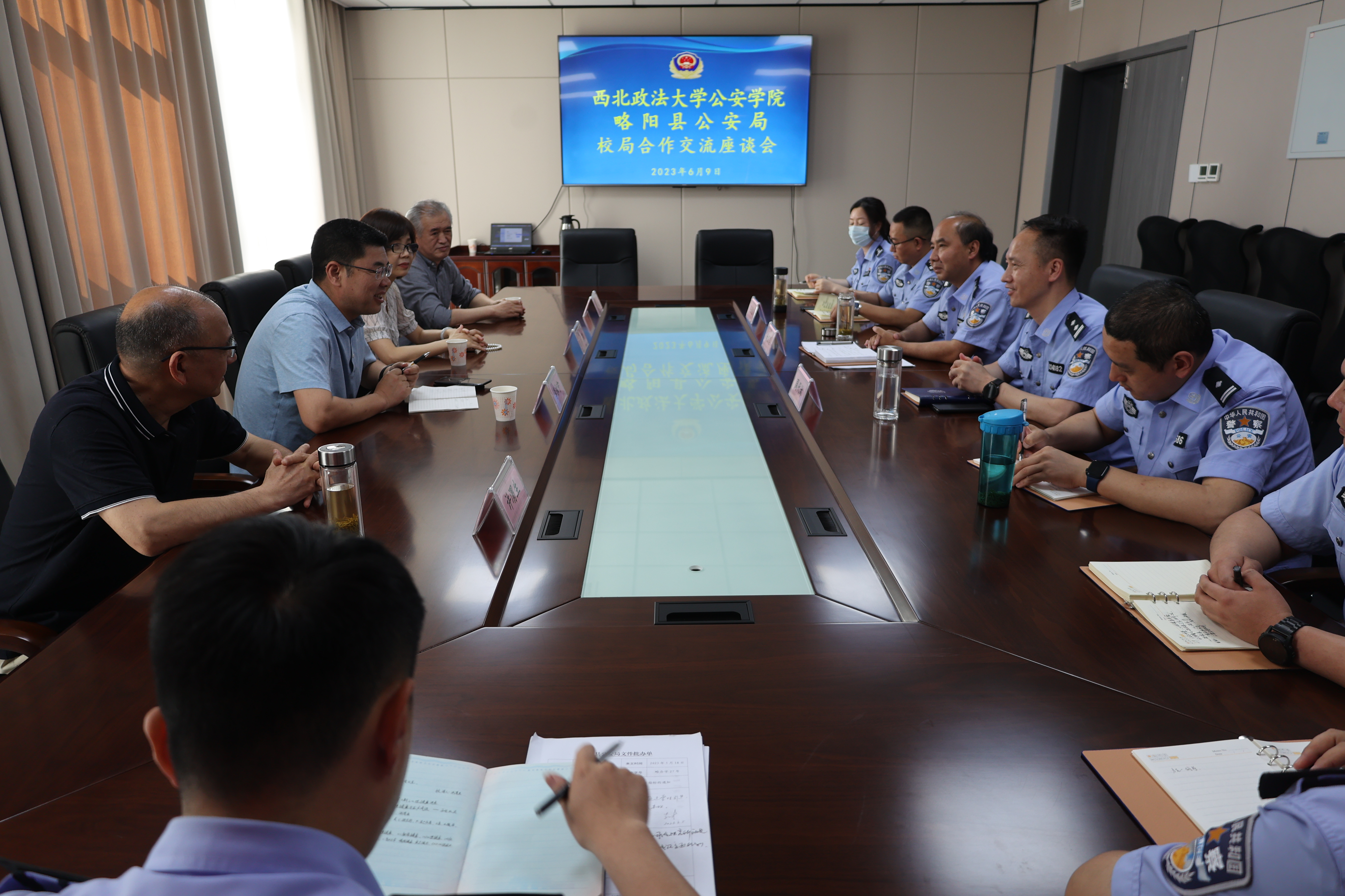 为进一步深化校局合作,强化互动交流,实现公安法学教育研究与公安实践深度融合,6月9日,明升M88 党委书记李永宁、副院长李莉、韦琪副教授、许渭生副教授应邀赴略阳县公安局进行院局合作调研座谈。略阳县副县长、略阳县公安局党委书记、局长黄汉国,政委周代林、副局长张连宏及略阳县公安局各职能部门负责人二十余人参加座谈会。