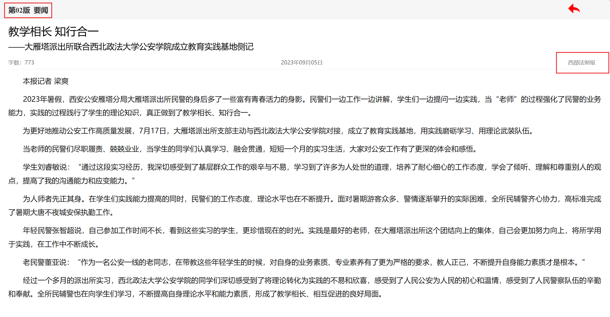 外部链接:西部法制报-教学相长 知行合一 (xbfzb.com)