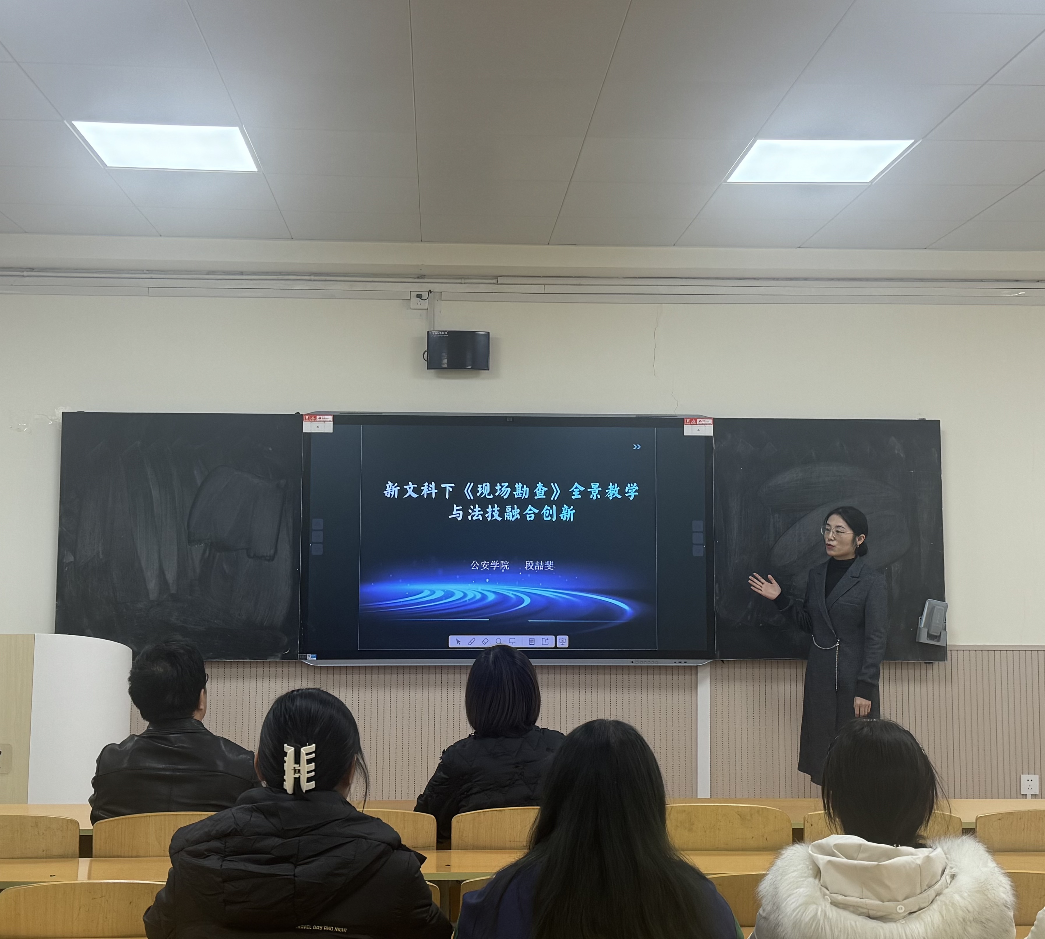 比赛中,段喆斐教师巧妙地将法学技术与新文科教学理念相融合,展现了现场勘查教学的创新路径;申飞飞教师以《警察执法与人权保障专题》为主题,提出了一套旨在培养具备“德、技、业”三重素质的警察执法人才的实施方案。他们精心设计的教学方案和生动有趣的现场教学展示赢得了在场评委和观众的高度评价和共鸣。