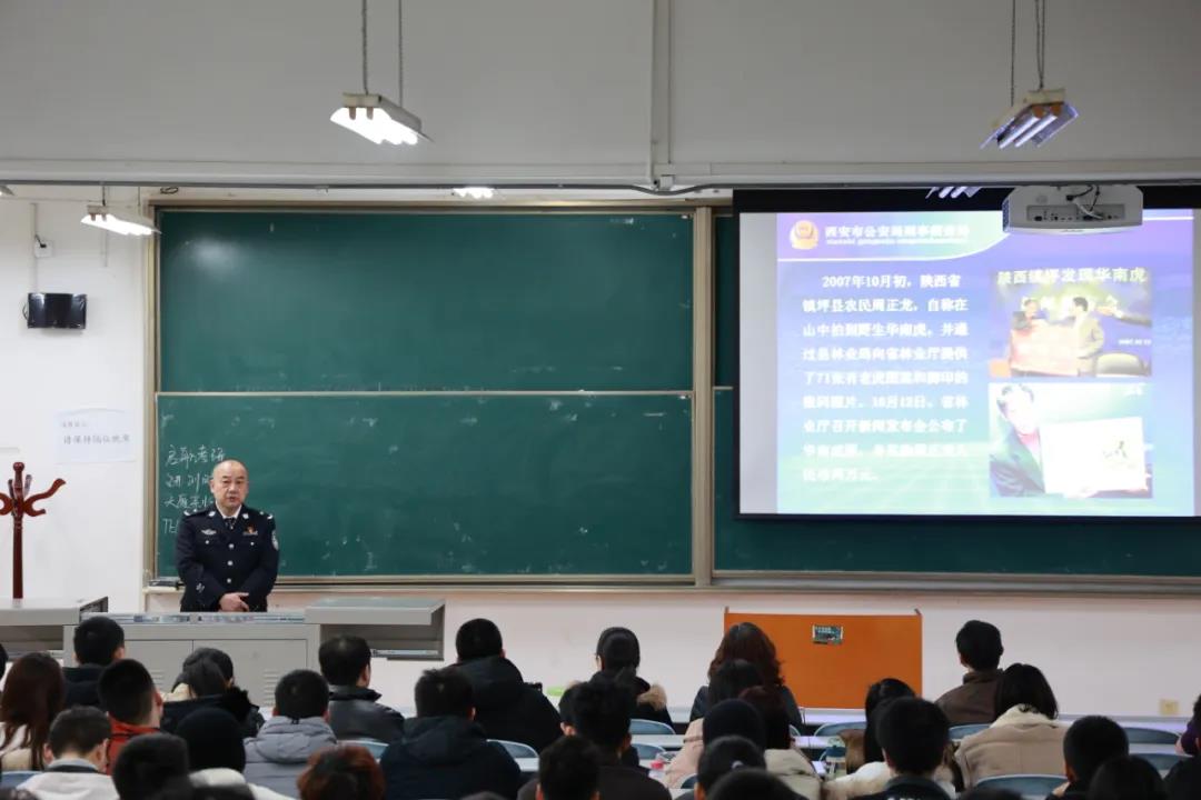 2020年12月3日晚,实务大讲堂系列活动之论案件现场重建—以“华南虎”等典型案件专题讲座,在明升M88 长安校区天平楼AJ22教室举行。此次讲座特邀西安市公安局刑侦局技术处警务技术二级主任、影像技术正高级工程师、三级警监赵仲学警官担任主讲,明升M88 副院长台治强教授主持本次讲座,明升M88 部分老师和全校同学们积极参加。讲座伊始,台治强教授对赵仲学主任的到来表示衷心的感谢和欢迎,并详细介绍了赵仲学主任的工作经历:公安部首届刑事技术课程专家,全国标准化委员会刑事照相、录像委员会委员,中国刑警明升M88 、中国人民公安大学及明升M88 客座教授,陕西省公安厅特聘刑侦专家等。赵仲学主任从警30多年来共出犯罪现场2000多起,参与侦破多起全省全国有名的影响重大的特大案件且发挥重要作用,发表相关刑事侦测论文二十余篇,因破获周正龙“华南虎”案受到陕西省公安厅的表扬,荣获个人二等功。赵仲学主任丰富的理论知识和实务经验为讲座现场的老师和同学们所称赞。