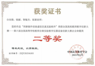 4.刑事案件侦查虚拟仿真实验中心教学软件获得国家发明专利授权,是公安政法院校首个公安类虚拟仿真实验教学软件,荣获“2016年高等明升M88 虚拟仿真实验教学资源建设成果二等奖”。2021年获得第六届全国高等明升M88 教师自制实验教学仪器设备创新大赛二等奖。2023年刑事案件侦查虚拟仿真综合实验课程获得国家级虚拟仿真实验教学一流课程。2024年4月刑事案件侦查虚拟仿真教学创新实验室获批教育部高等明升M88 虚拟仿真教学创新实验室。